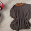 Petit modèle sur la photo porte le poncho sherpa et le bonnet nounours.