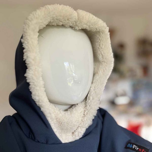 Avec la doublure nounours, le col est en nounours également, sinon le col est en jersey de coton biologique tout doux.